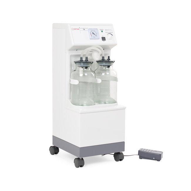 • Отсасыватель хирургический передвижной 7А прост в эксплуатации, оснащен ножной педалью для дистанционного включения и может работать непрерывно в течение 4 часов, благодаря чему может применяться при проведении длительных операций высокой сложности!