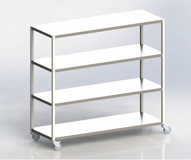 Стеллаж передвижной с четырьмя полками. Каркас из профильной трубы. Полки-нержавейка.