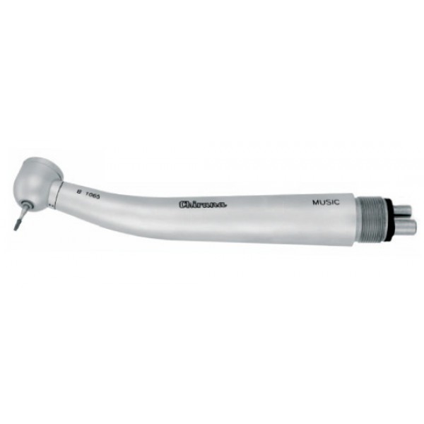 • Мощный турбинный наконечник без подсветки с кнопочным зажимом для боров, с боковой струйной системой охлаждения препарационного инструмента.